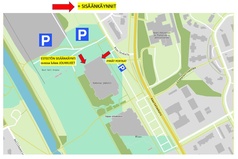 Mikäli yläovi on lukossa Hermeksen pelien aikana, niin käynti radalle parkkipaikan puoleisen päädyn alaovesta, josta on myös esteetön kulku.